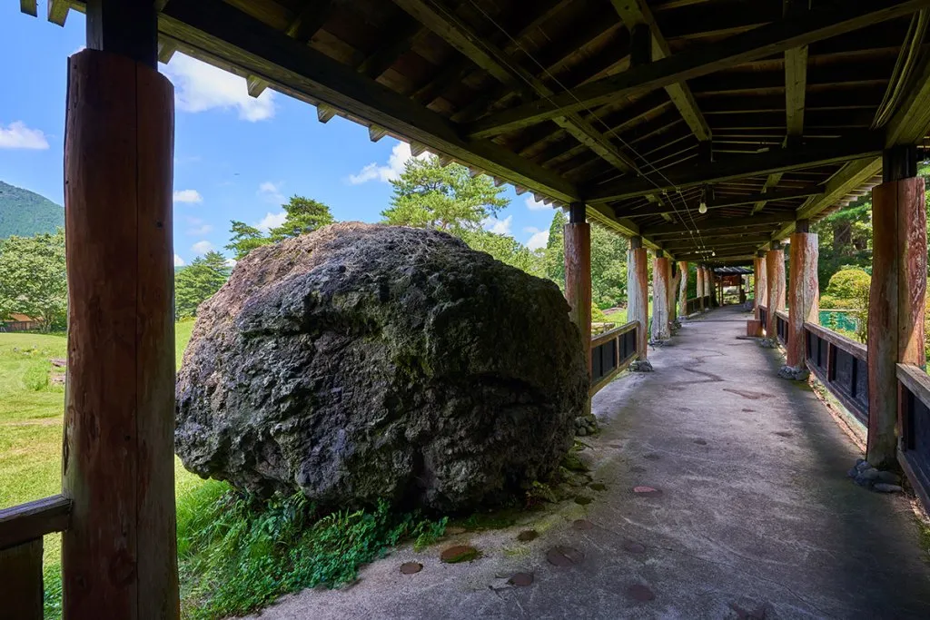 아소산과 외륜산이 펼쳐진 웅대한 자연 속, 주변에는 숲과 호수가 자리하고 있습니다.