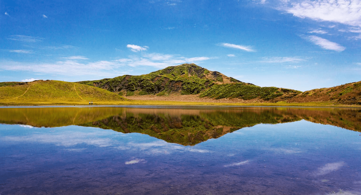 もとは火口だった場所で直径約1kmの円形の草原が広がっている。4月〜11月頃には、草原で乗馬体験もできる。