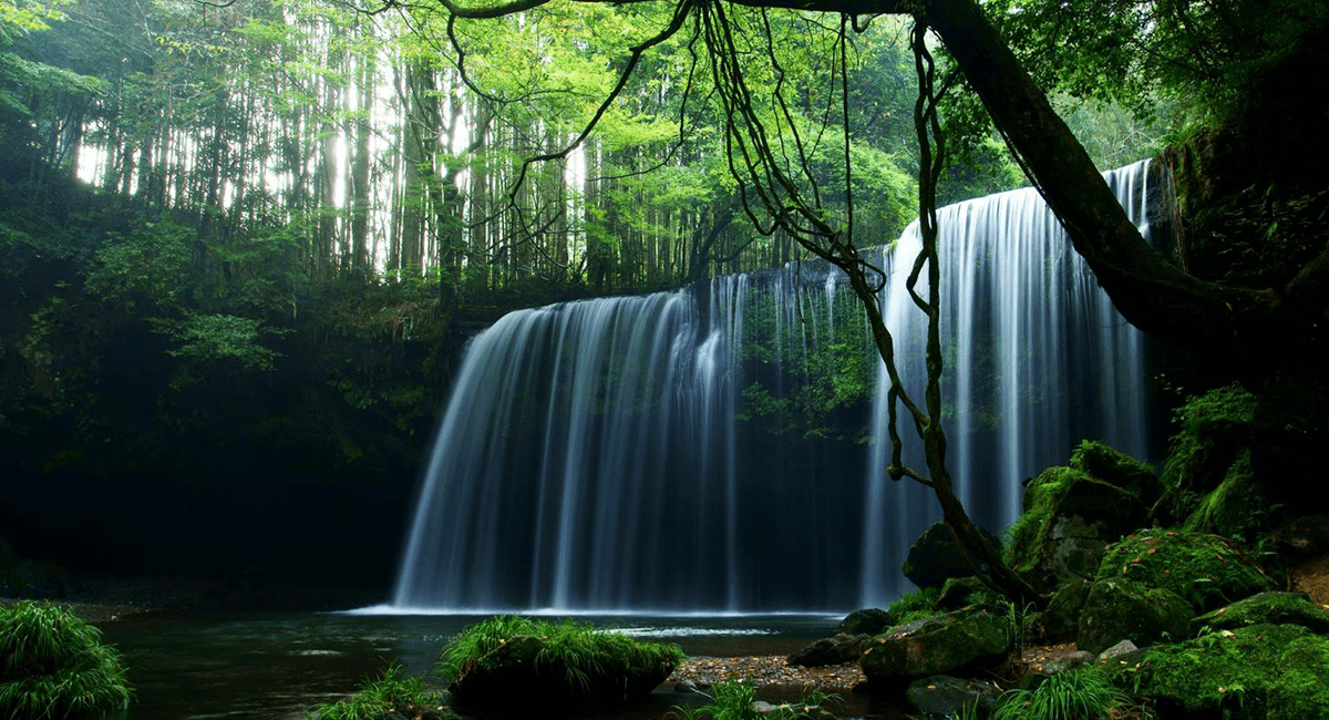 落差約10m、幅約20mほどの滝。滝の裏側に回ることもでき「裏見の滝」が味わえる。某お茶のCMで一躍小国町の人気スポットに。
