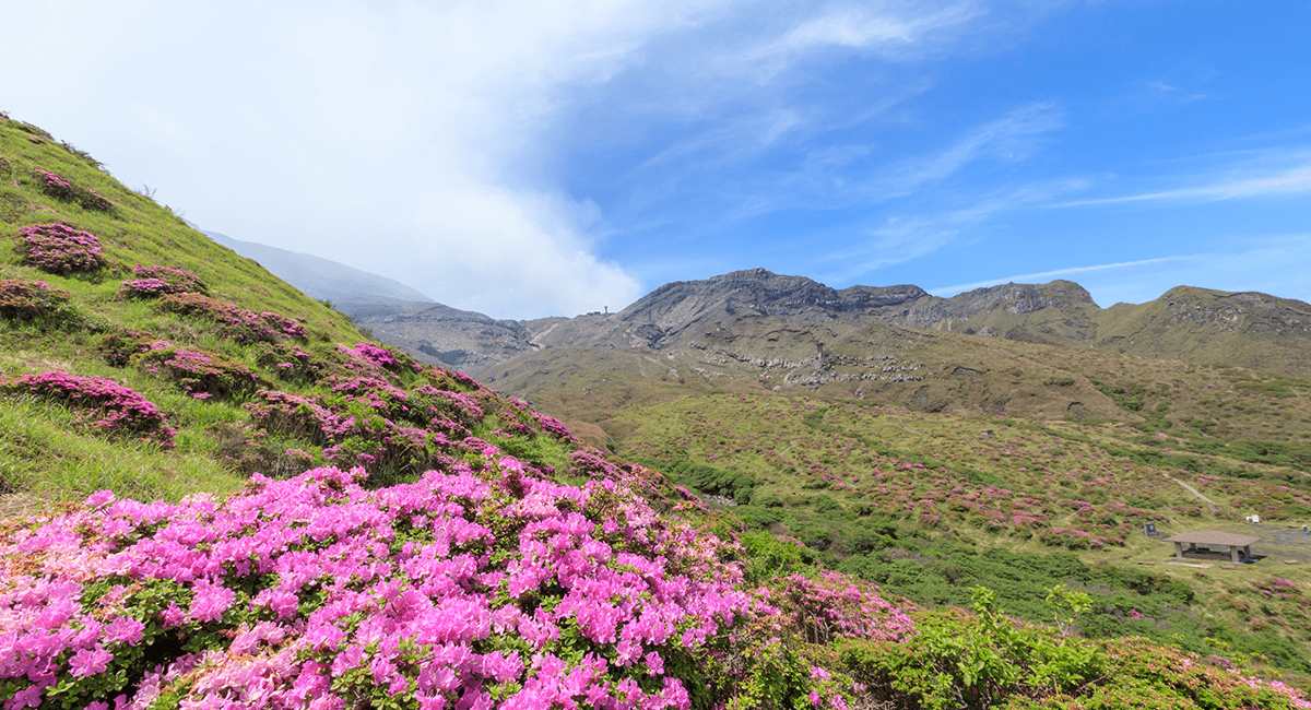 阿蘇山高岳の北麓にあたる標高は約900m眼下には阿蘇カルデラの北側に当たる阿蘇谷と北外輪山が一望できる。春にはミヤマキリシマが咲き乱れます。